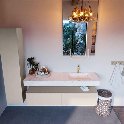 MONDIAZ ALAN - DLUX Badkamermeubelset - 150cm - onderkast - Linen - 2 lades - vrijhangende wastafel - wasbak rechts - 1 kraangat - Ostra