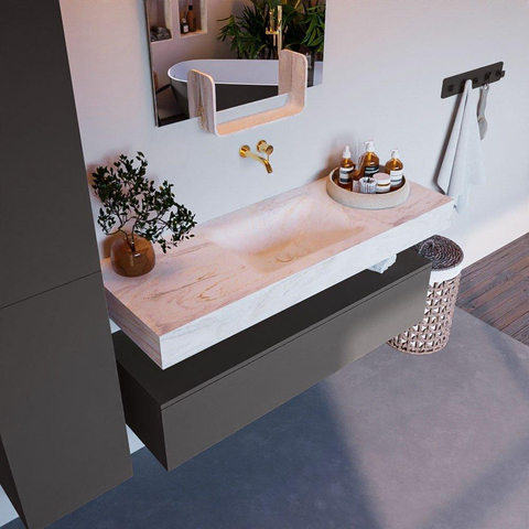 MONDIAZ ALAN - DLUX Badkamermeubelset - 130cm - onderkast - Dark grey - 1 lade - vrijhangende wastafel - wasbak midden - 0 kraangaten - Ostra