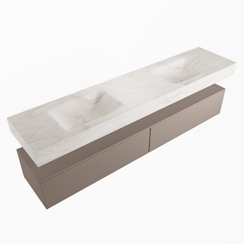 MONDIAZ ALAN - DLUX Badkamermeubelset - 200cm - onderkast - Smoke - 2 lades - vrijhangende wastafel - 2 wasbakken - 0 kraangaten - Ostra