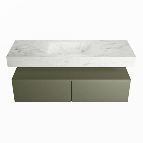 MONDIAZ ALAN - DLUX Badkamermeubelset - 130cm - onderkast - Army - 2 lades - vrijhangende wastafel - wasbak midden - 1 kraangat - Opalo