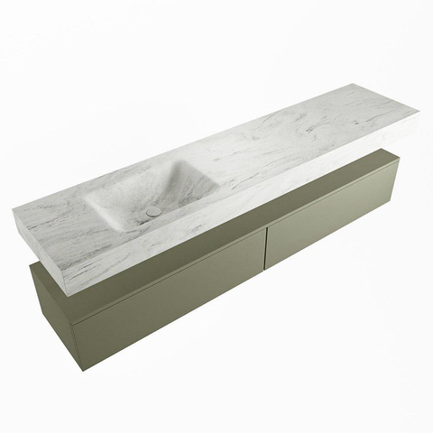 MONDIAZ ALAN - DLUX Badkamermeubelset - 200cm - onderkast - Army - 2 lades - vrijhangende wastafel - wasbak links - 1 kraangat - Opalo