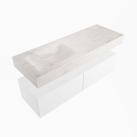 MONDIAZ ALAN - DLUX Badkamermeubelset - 130cm - onderkast - Talc - 2 lades - vrijhangende wastafel - wasbak links - 1 kraangat - Ostra