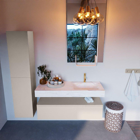 De MONDIAZ ALAN - DLUX badkamermeubelset straalt stijl en klasse uit. De Linen afwerking geeft het meubel een tijdloze uitstraling die moeiteloos past bij verschillende interieurstijlen. De vrijhangende wastafel zorgt voor een luchtige en eigentijdse look, terwijl de 1 lade voldoende opbergruimte biedt voor al je badkamerspullen. Dit meubel combineert functionaliteit met elegantie op een unieke manier.