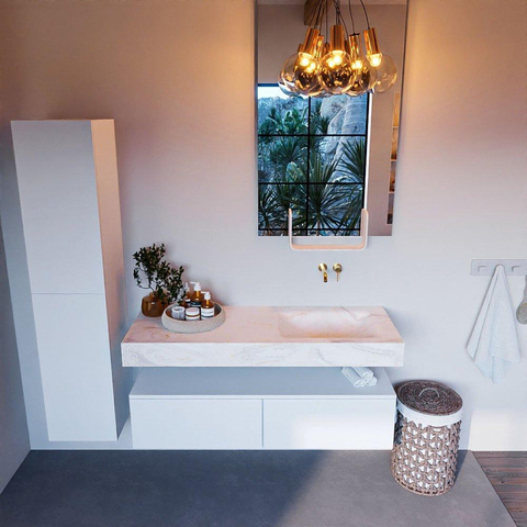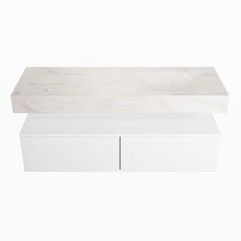 MONDIAZ ALAN - DLUX Badkamermeubelset - 130cm - onderkast - Talc - 2 lades - vrijhangende wastafel - wasbak rechts - 0 kraangaten - Ostra