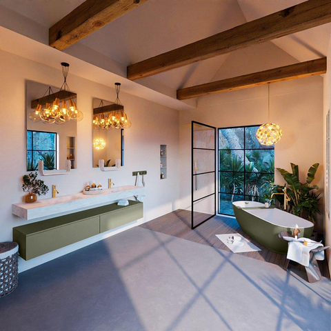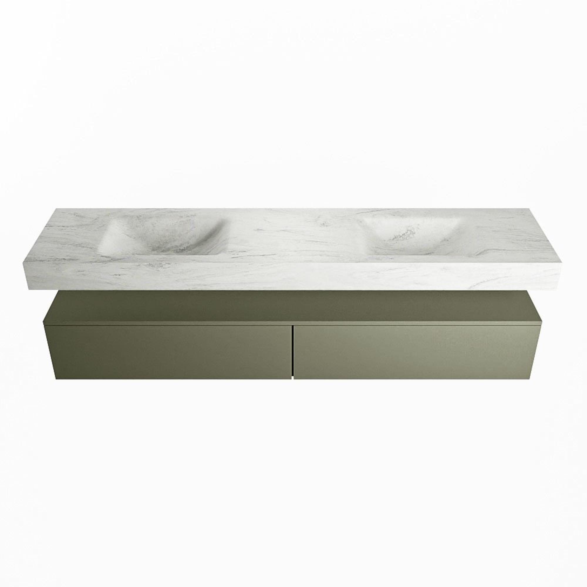 MONDIAZ ALAN - DLUX Badkamermeubelset - 200cm - onderkast - Army - 2 lades - vrijhangende wastafel - 2 wasbakken - 2 kraangaten - Opalo