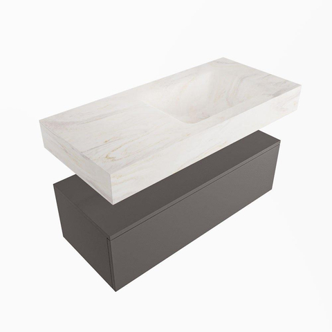 MONDIAZ ALAN - DLUX Badkamermeubelset - 100cm - onderkast - Dark grey - 1 lade - vrijhangende wastafel - wasbak rechts - 1 kraangat - Ostra