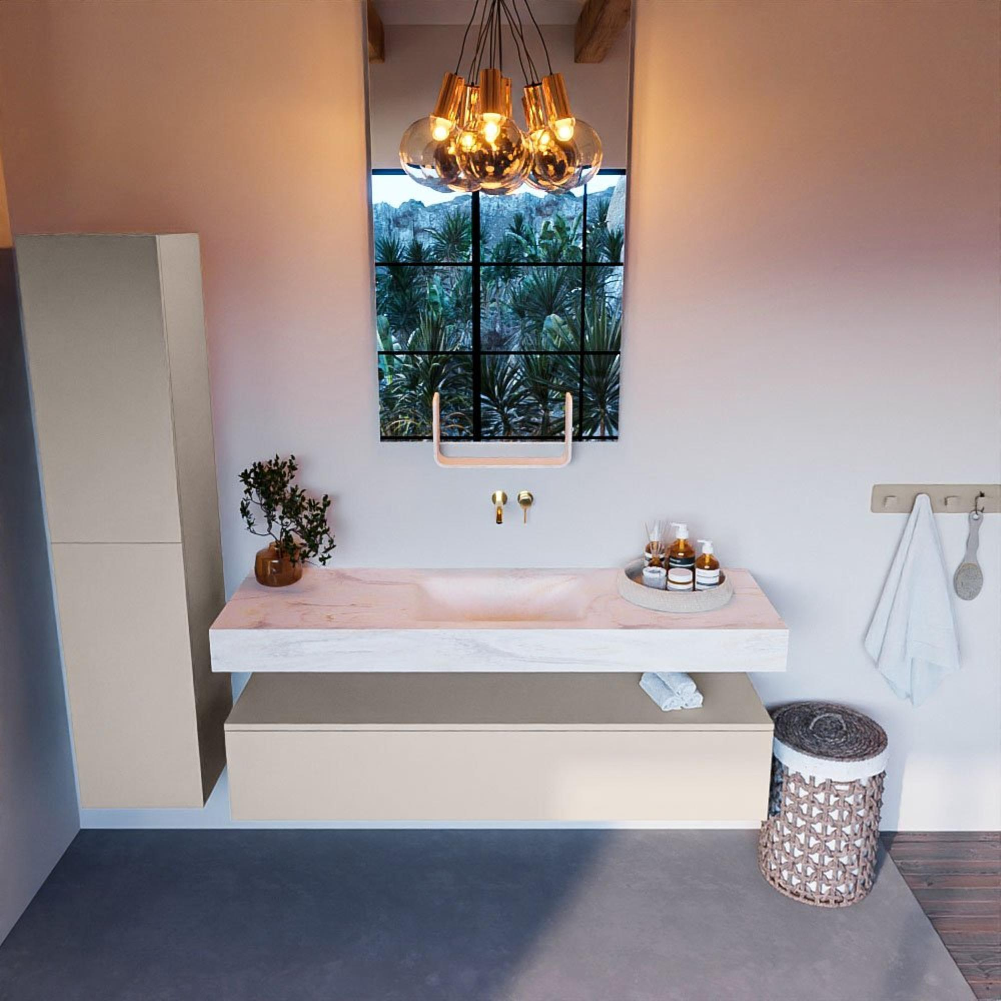 MONDIAZ ALAN - DLUX Badkamermeubelset - 150cm - onderkast - Linen - 1 lade - vrijhangende wastafel - wasbak midden - 0 kraangaten - Ostra