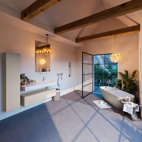 De MONDIAZ ALAN - DLUX badkamermeubelset straalt stijl en elegantie uit. De Linen afwerking geeft een warme en moderne uitstraling aan de badkamer. De vrijhangende wastafel zorgt voor een ruimtelijk gevoel en creëert een luxe sfeer. Met zijn strakke lijnen en subtiele details is dit meubelstuk een blikvanger in elke badkamer.