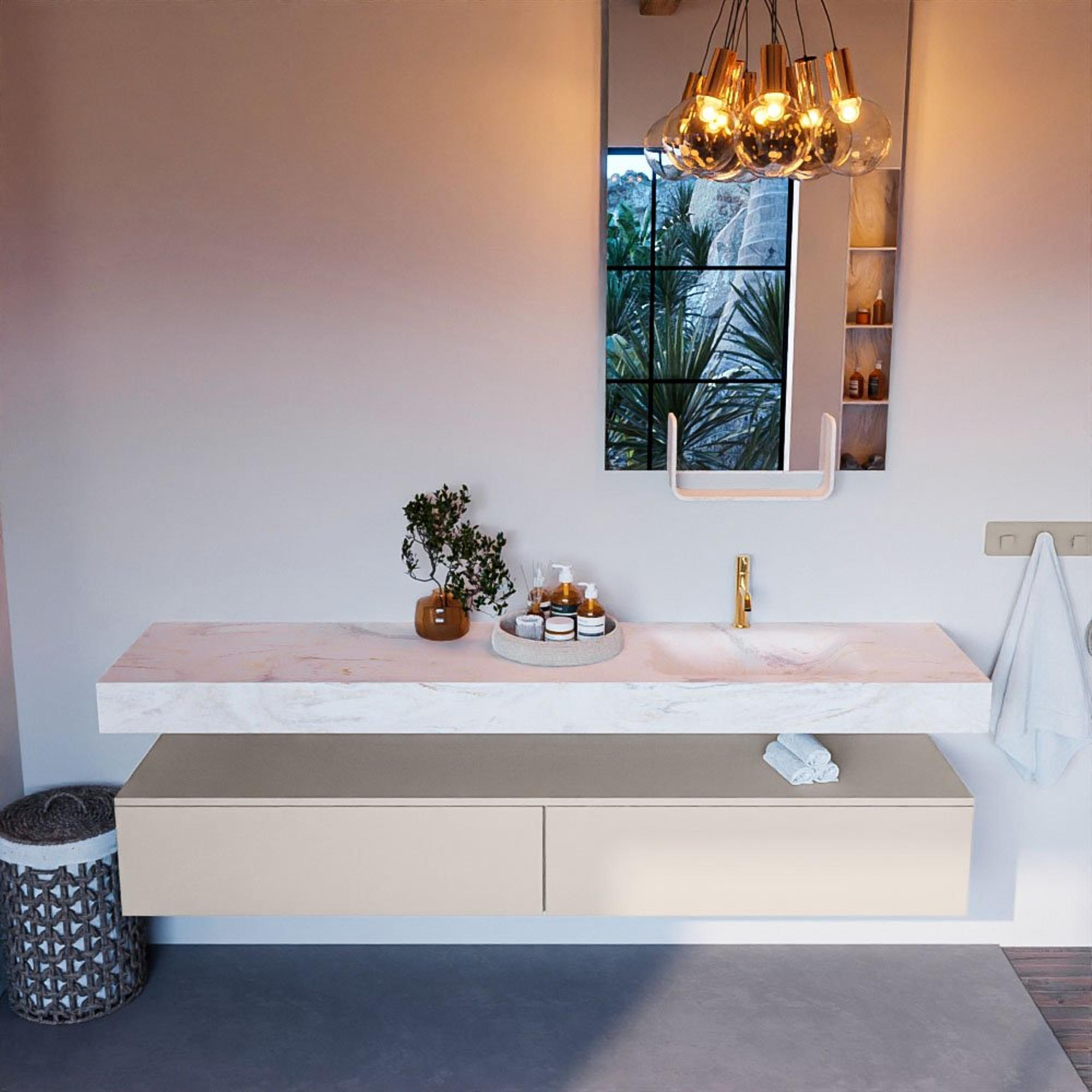 MONDIAZ ALAN - DLUX Badkamermeubelset - 200cm - onderkast - Linen - 2 lades - vrijhangende wastafel - wasbak rechts - 1 kraangat - Ostra