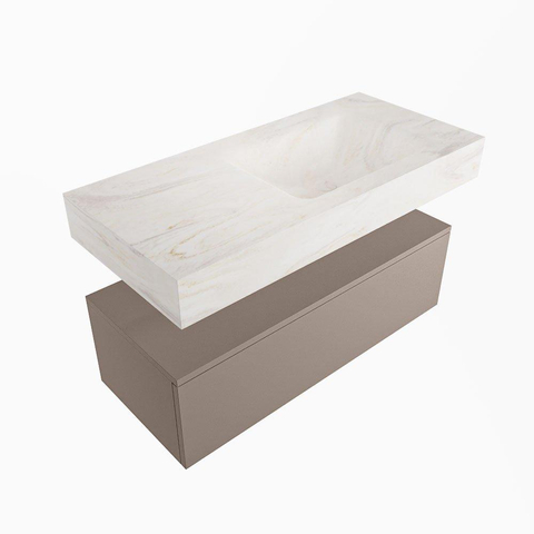 MONDIAZ ALAN - DLUX Badkamermeubelset - 100cm - onderkast - Smoke - 1 lade - vrijhangende wastafel - wasbak rechts - 0 kraangaten - Ostra