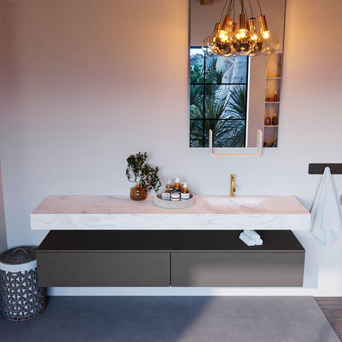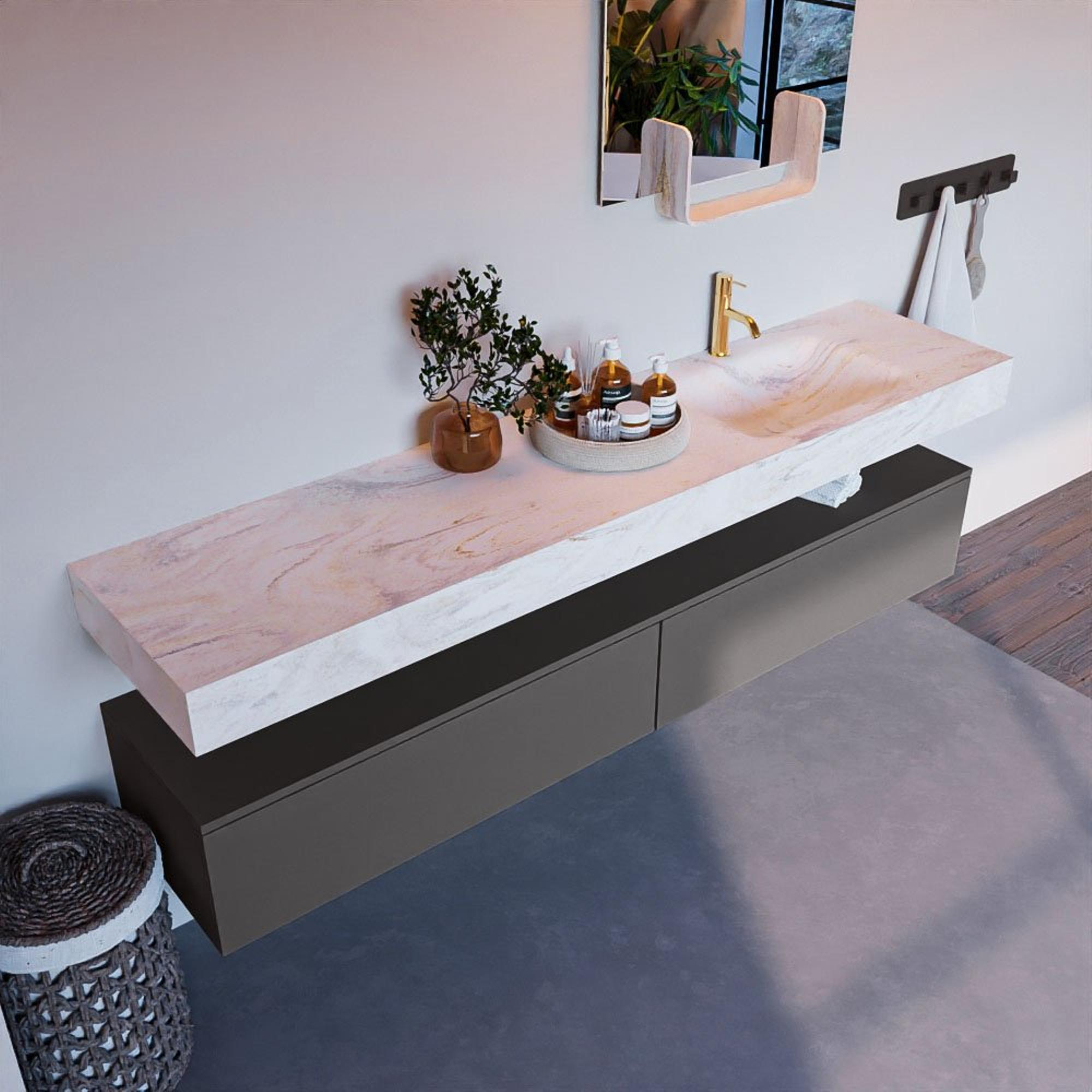 MONDIAZ ALAN - DLUX Badkamermeubelset - 200cm - onderkast - Dark grey - 2 lades - vrijhangende wastafel - wasbak rechts - 1 kraangat - Ostra