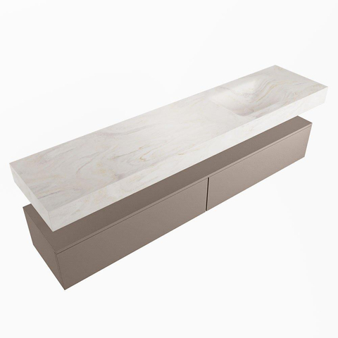 MONDIAZ ALAN - DLUX Badkamermeubelset - 200cm - onderkast - Smoke - 2 lades - vrijhangende wastafel - wasbak rechts - 0 kraangaten - Ostra