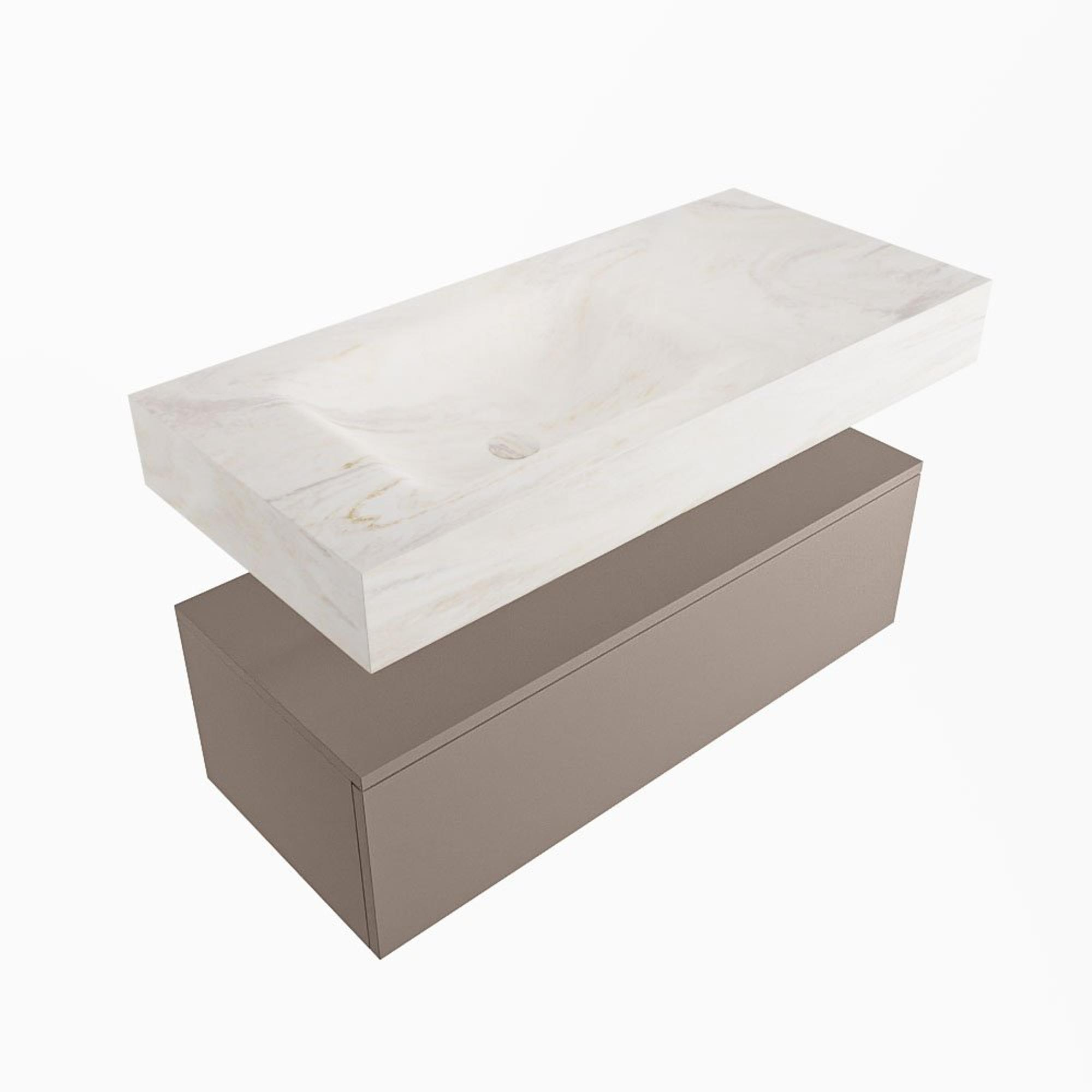 MONDIAZ ALAN - DLUX Badkamermeubelset - 100cm - onderkast - Smoke - 1 lade - vrijhangende wastafel - wasbak links - 0 kraangaten - Ostra
