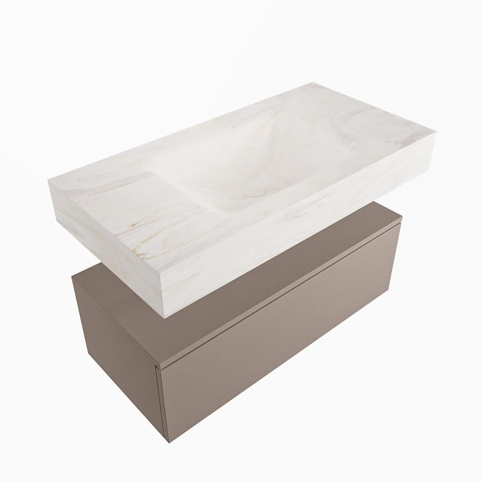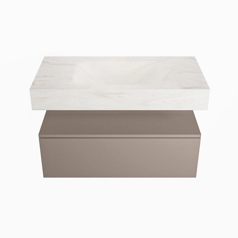 MONDIAZ ALAN - DLUX Badkamermeubelset - 90cm - onderkast - Smoke - 1 lade - vrijhangende wastafel - wasbak midden - 0 kraangaten - Ostra