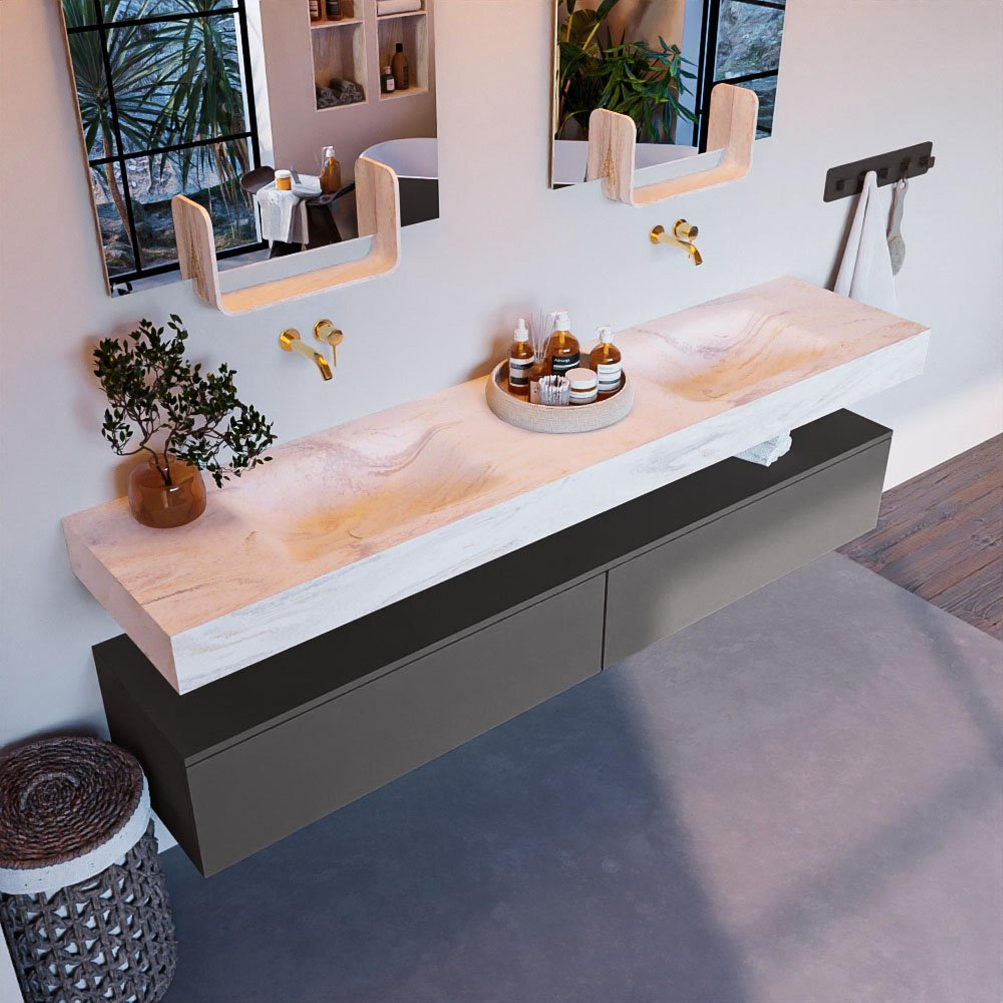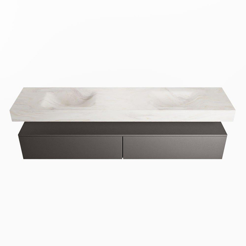 MONDIAZ ALAN - DLUX Badkamermeubelset - 200cm - onderkast - Dark grey - 2 lades - vrijhangende wastafel - 2 wasbakken - 0 kraangaten - Ostra