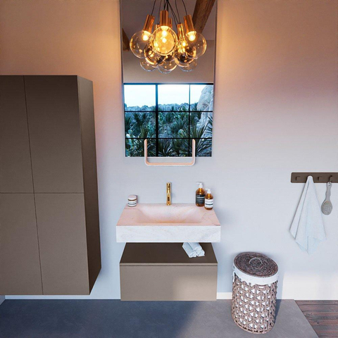 De MONDIAZ ALAN - DLUX badkamermeubelset onderscheidt zich door zijn stijlvolle ontwerp en aandacht voor detail. De Smoke kleur geeft een warme en uitnodigende uitstraling, terwijl de vrijhangende wastafel zorgt voor een ruimtelijk gevoel in de badkamer. De 1 lade biedt voldoende opbergruimte voor al je badkamerbenodigdheden, waardoor functionaliteit en design hand in hand gaan.