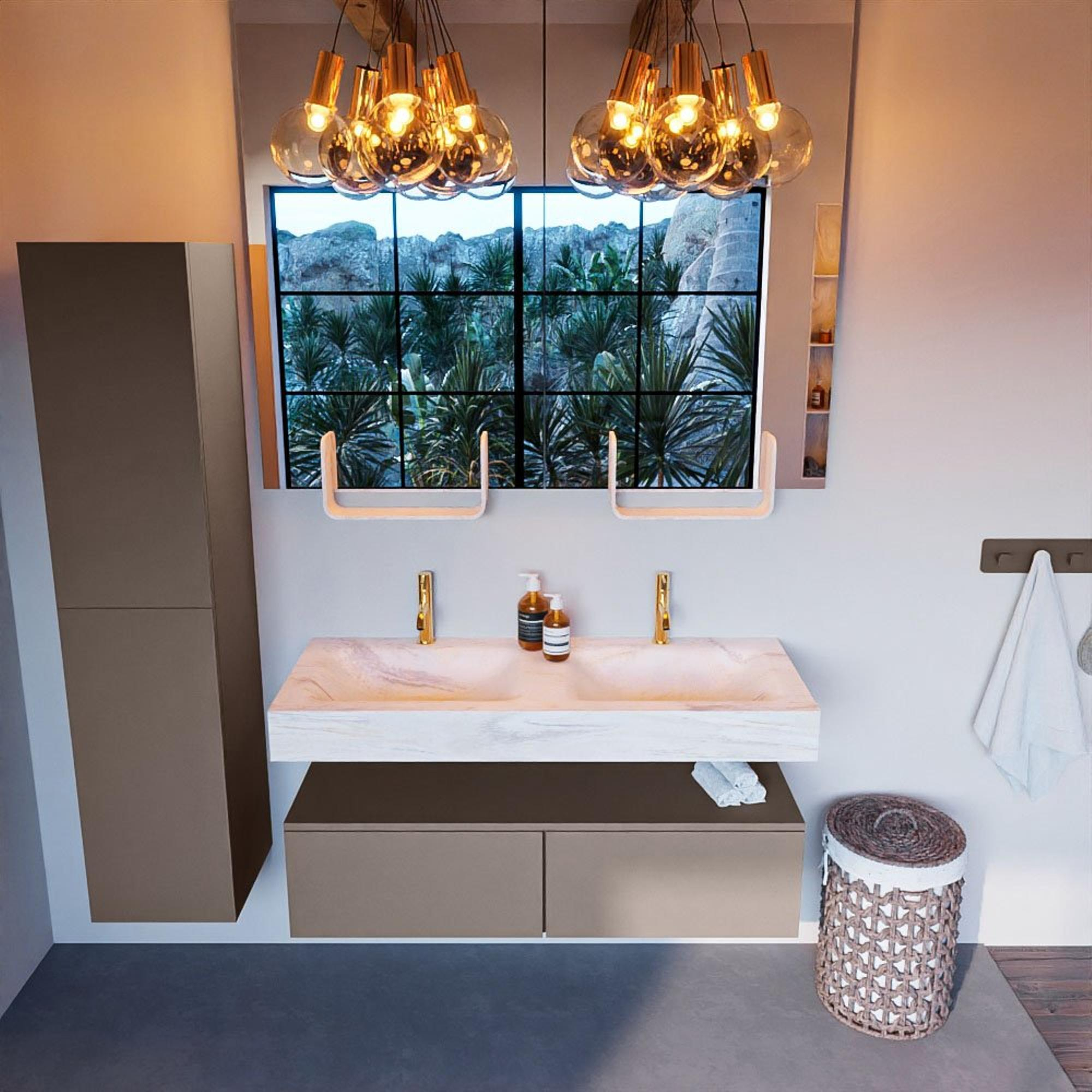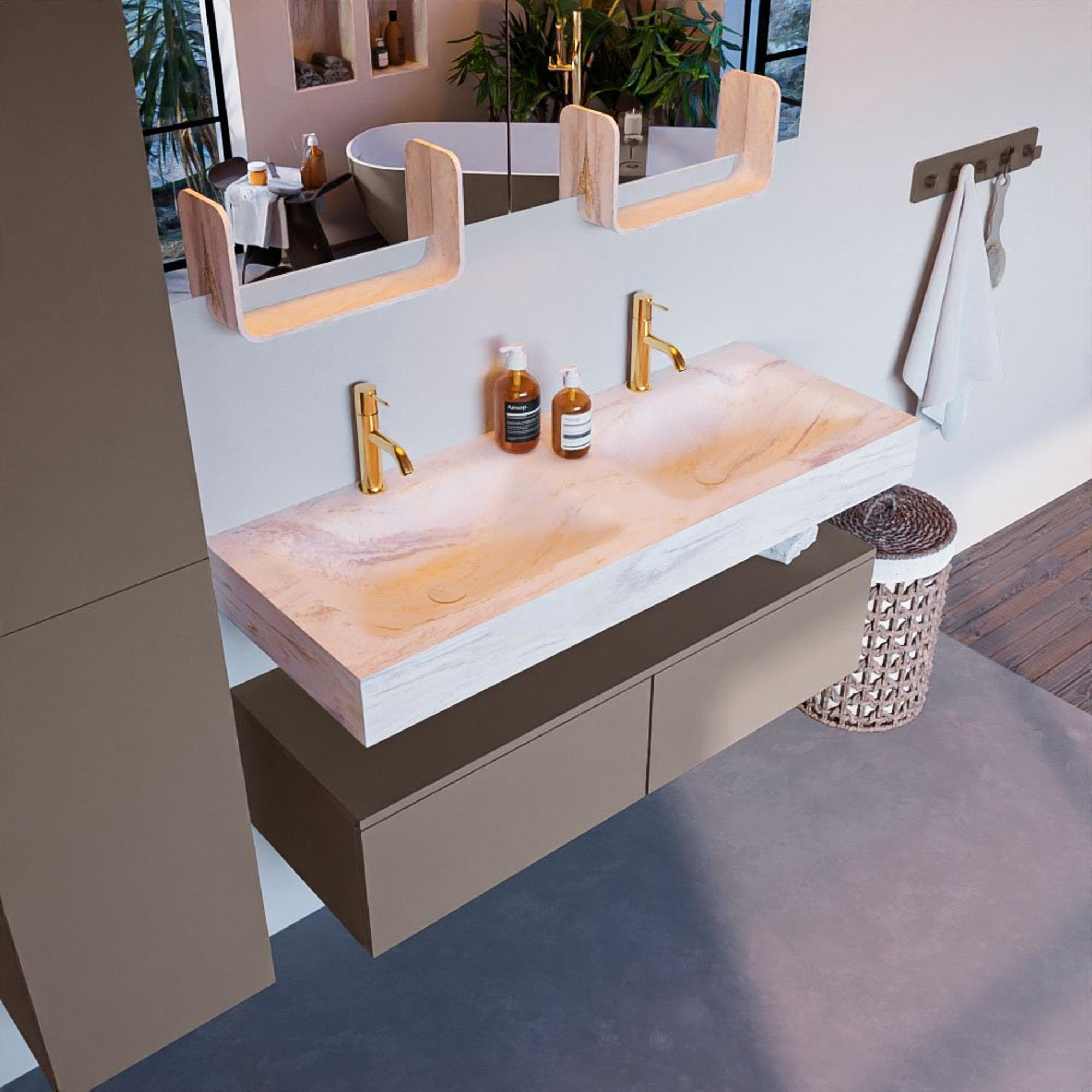 MONDIAZ ALAN - DLUX Badkamermeubelset - 120cm - onderkast - Smoke - 2 lades - vrijhangende wastafel - 2 wasbakken - 2 kraangaten - Ostra