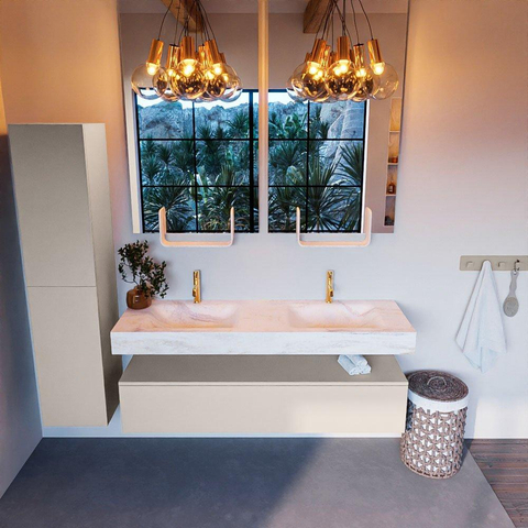 MONDIAZ ALAN - DLUX Badkamermeubelset - 150cm - onderkast - Linen - 1 lade - vrijhangende wastafel - 2 wasbakken - 2 kraangaten - Ostra