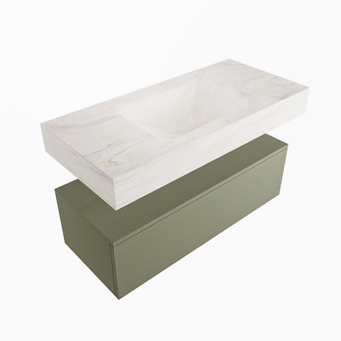 MONDIAZ ALAN - DLUX Badkamermeubelset - 100cm - onderkast - Army - 1 lade - vrijhangende wastafel - wasbak midden - 0 kraangaten - Ostra