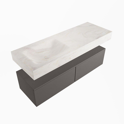 MONDIAZ ALAN - DLUX Badkamermeubelset - 130cm - onderkast - Dark grey - 2 lades - vrijhangende wastafel - wasbak links - 0 kraangaten - Ostra