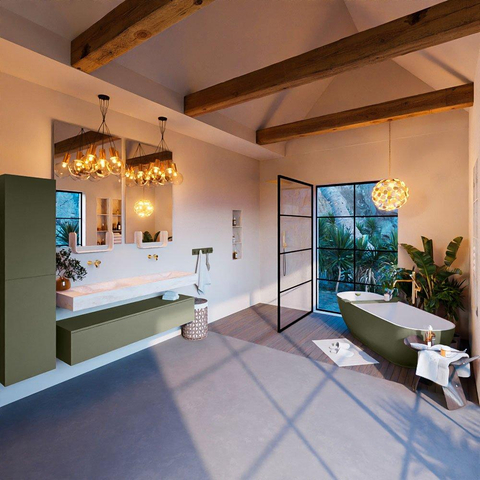 Dit badkamermeubelset is ontworpen met oog voor stijl. De Army kleur geeft een eigentijdse uitstraling en past perfect bij diverse interieurstijlen. De vrijhangende wastafel en de strakke lijnen van het ontwerp zorgen voor een moderne en luxe look in de badkamer. Het meubelstuk is niet alleen functioneel, maar dient ook als een prachtig decoratief element in de ruimte.
