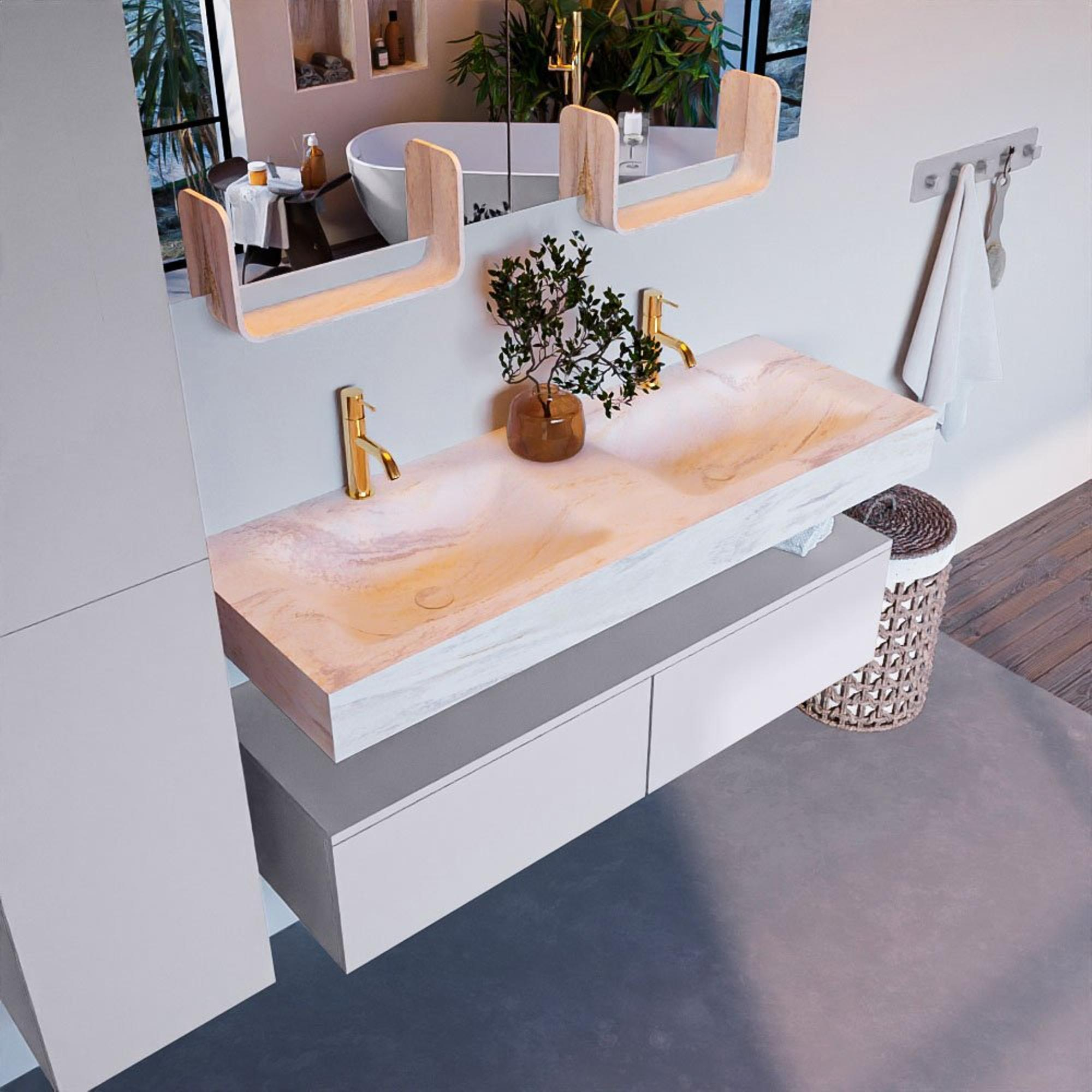 - Vrijhangende wastafel met 2 wasbakken