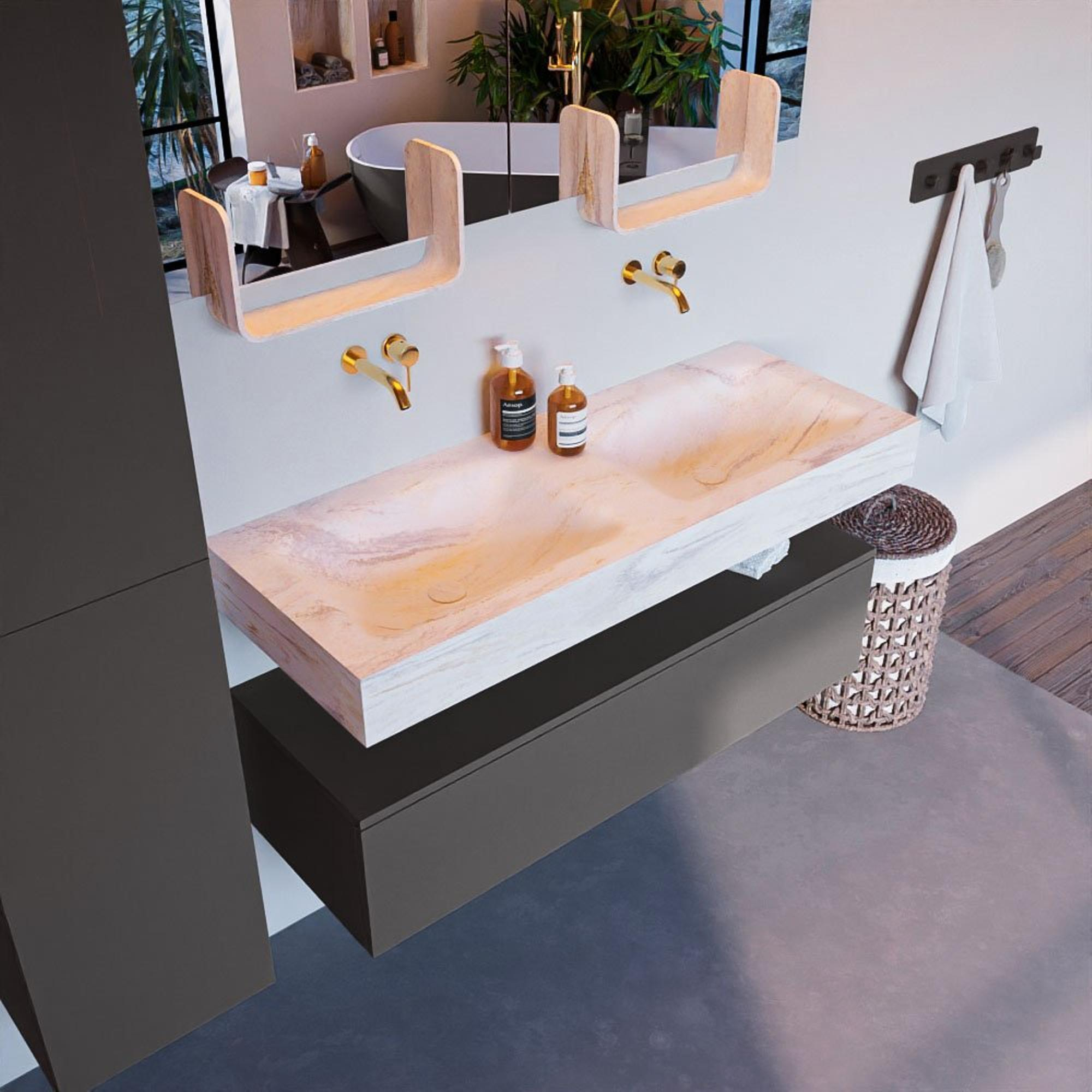 - Vrijhangende wastafel met 2 wasbakken