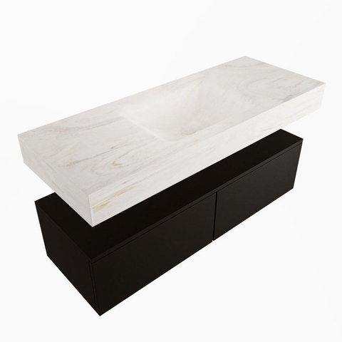 Naast zijn prachtige uiterlijk is de MONDIAZ ALAN - DLUX Badkamermeubelset - 120cm ook zeer functioneel. De 2 lades bieden voldoende ruimte om al jouw badkamerspullen netjes op te bergen, terwijl de vrijhangende wastafel zorgt voor een ruimtelijk effect in de badkamer. Het kraangat in het midden maakt het eenvoudig om een kraan te installeren, waardoor dit meubel zowel mooi als praktisch is.