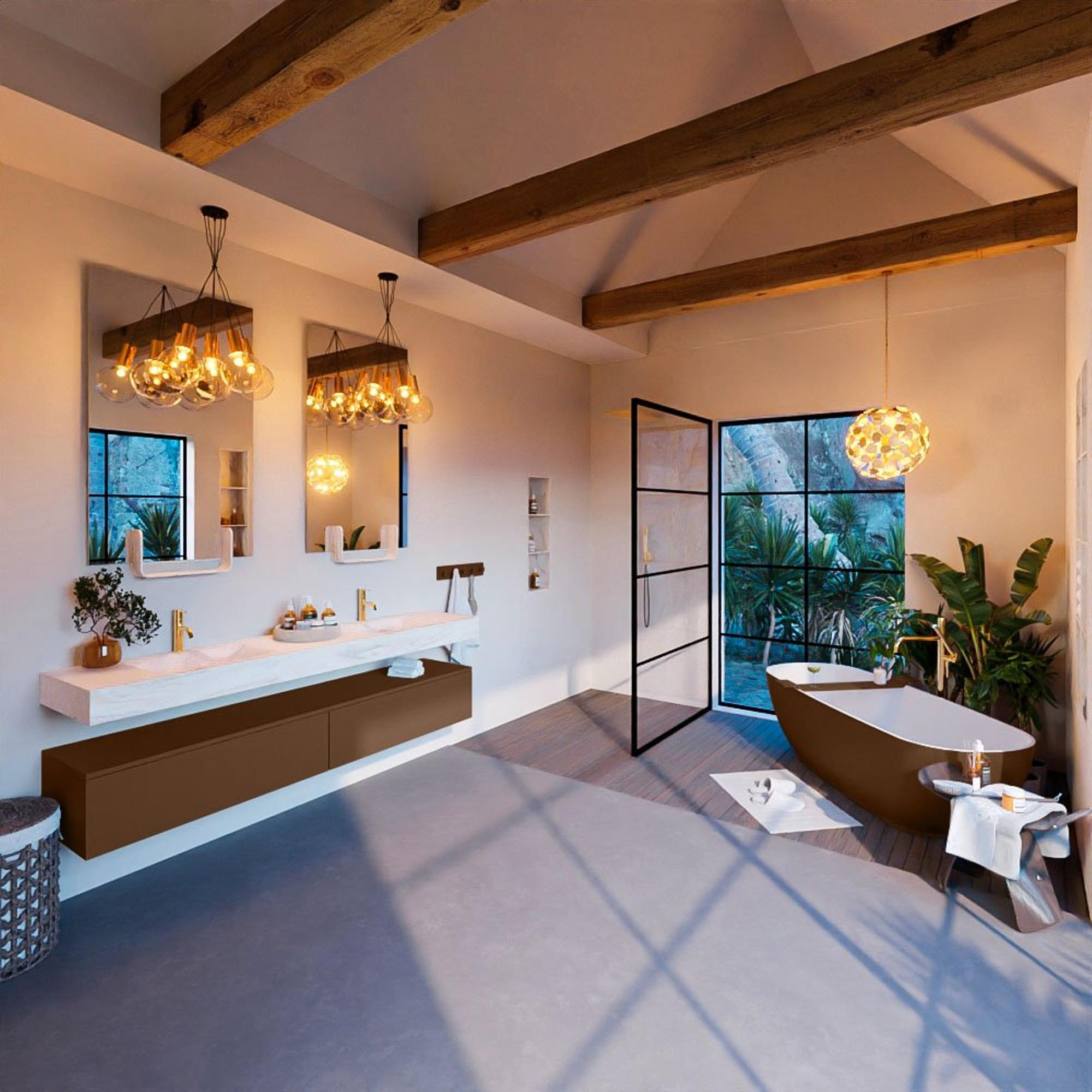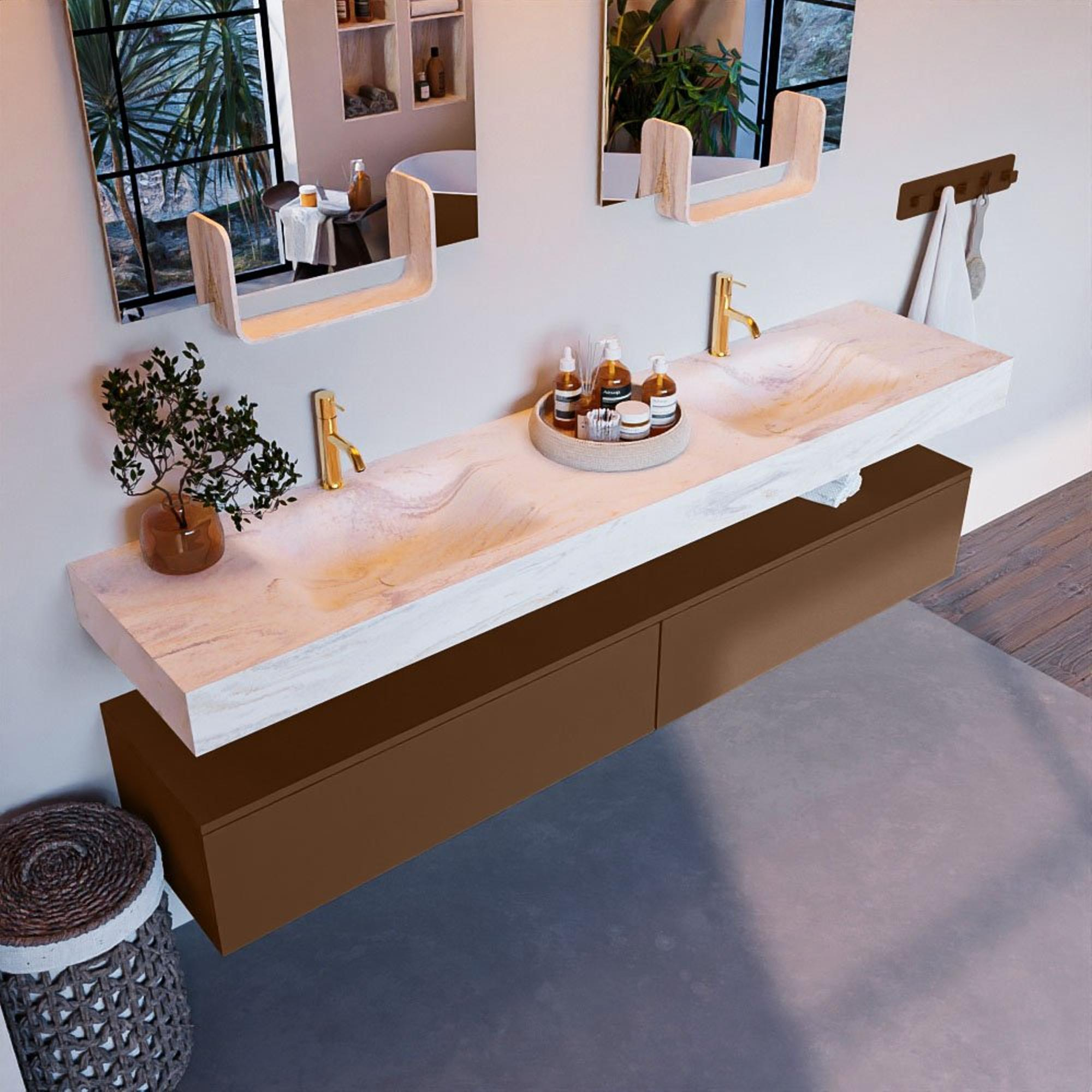 MONDIAZ ALAN - DLUX Badkamermeubelset - 200cm - onderkast - Rust - 2 lades - vrijhangende wastafel - 2 wasbakken - 2 kraangaten - Ostra