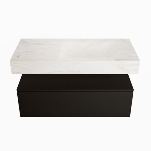 Naast zijn esthetische waarde is dit badkamermeubelset ook uiterst functioneel. Met een onderkast en een lade biedt het voldoende ruimte om al jouw badkamerspullen netjes op te bergen. De 100cm breedte zorgt voor een ruim werkblad, terwijl de 0 kraangaten een strakke en minimalistische uitstraling geven. Dit meubelset combineert design met praktisch gebruiksgemak.