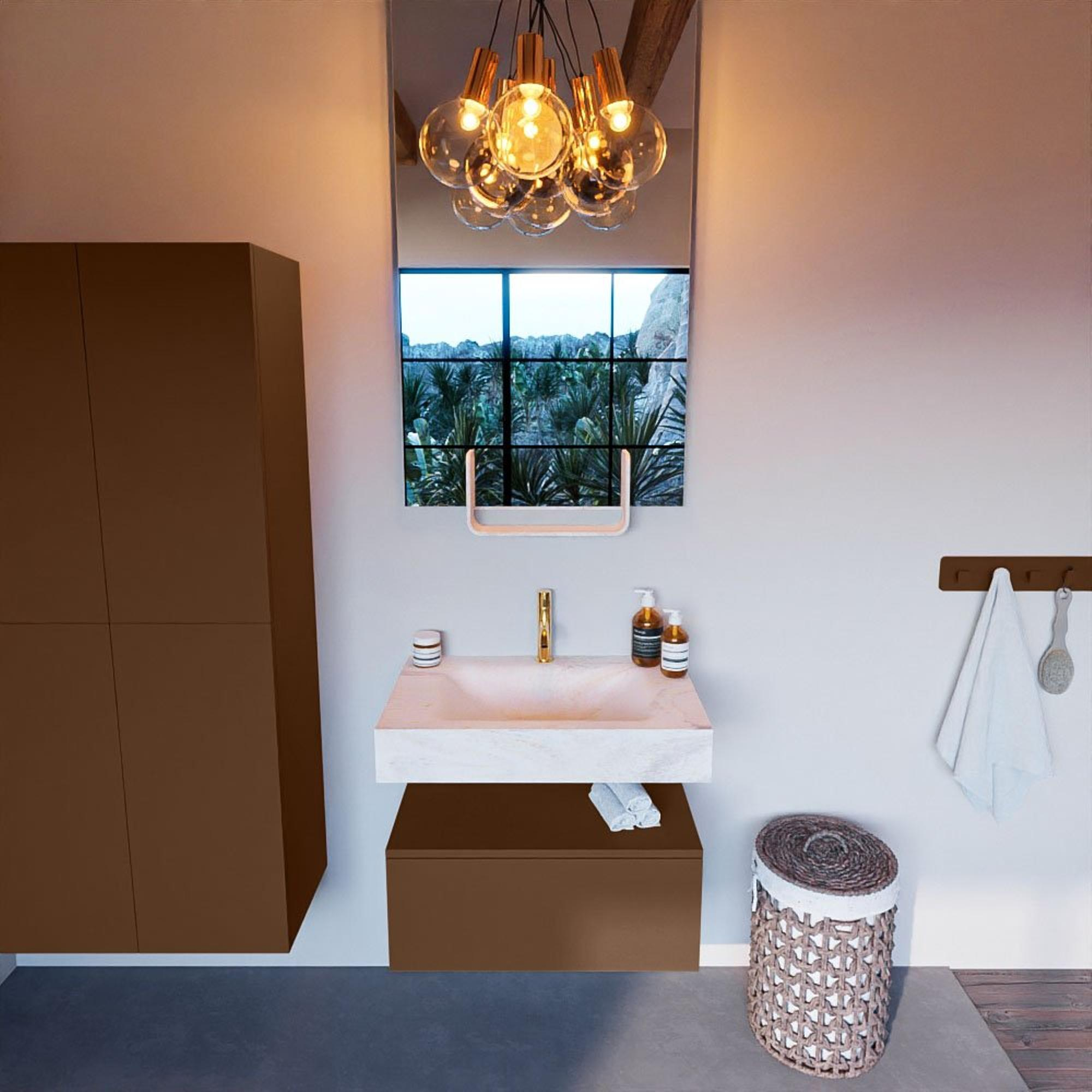 MONDIAZ ALAN - DLUX Badkamermeubelset - 70cm - onderkast - Rust - 1 lade - vrijhangende wastafel - wasbak midden - 1 kraangat - Ostra