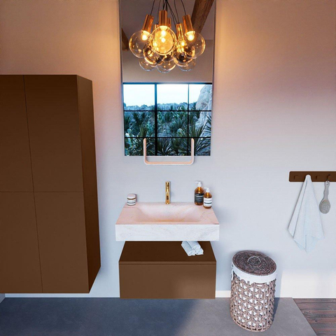 De MONDIAZ ALAN - DLUX badkamermeubelset straalt een onmiskenbare elegantie uit. Het ontwerp met de vrijhangende wastafel en de subtiele details in de Rust-kleur creëren een sfeer van luxe en verfijning. De 1 lade biedt niet alleen opbergruimte, maar voegt ook een vleugje elegantie toe aan de badkamer. Dit meubelstuk is perfect voor wie op zoek is naar een badkamerinrichting die zowel functioneel als stijlvol is.