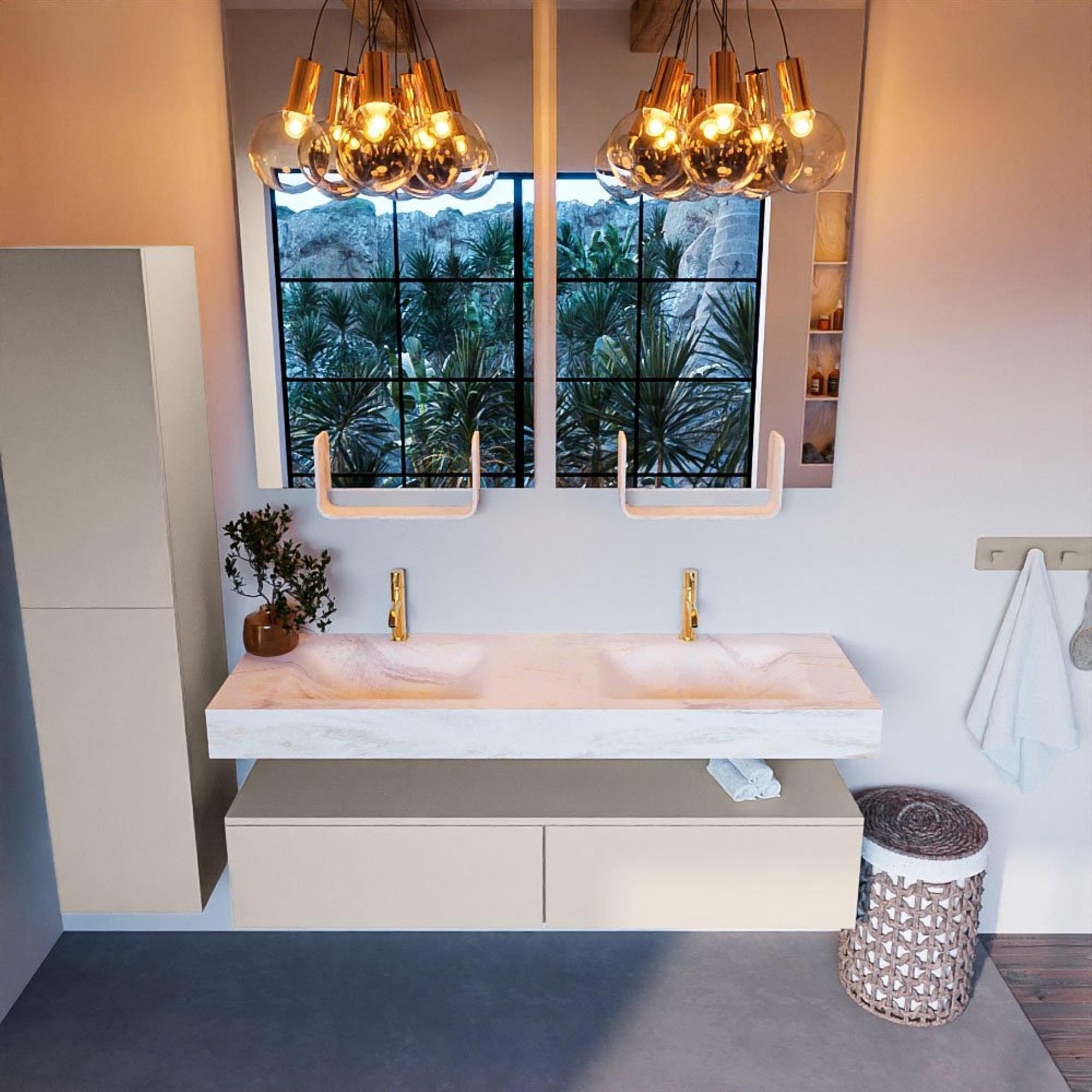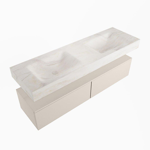 MONDIAZ ALAN - DLUX Badkamermeubelset - 150cm - onderkast - Linen - 2 lades - vrijhangende wastafel - 2 wasbakken - 2 kraangaten - Ostra