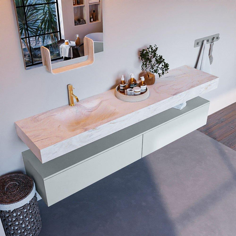 MONDIAZ ALAN - DLUX Badkamermeubelset - 200cm - onderkast - Clay - 2 lades - vrijhangende wastafel - wasbak links - 1 kraangat - Ostra