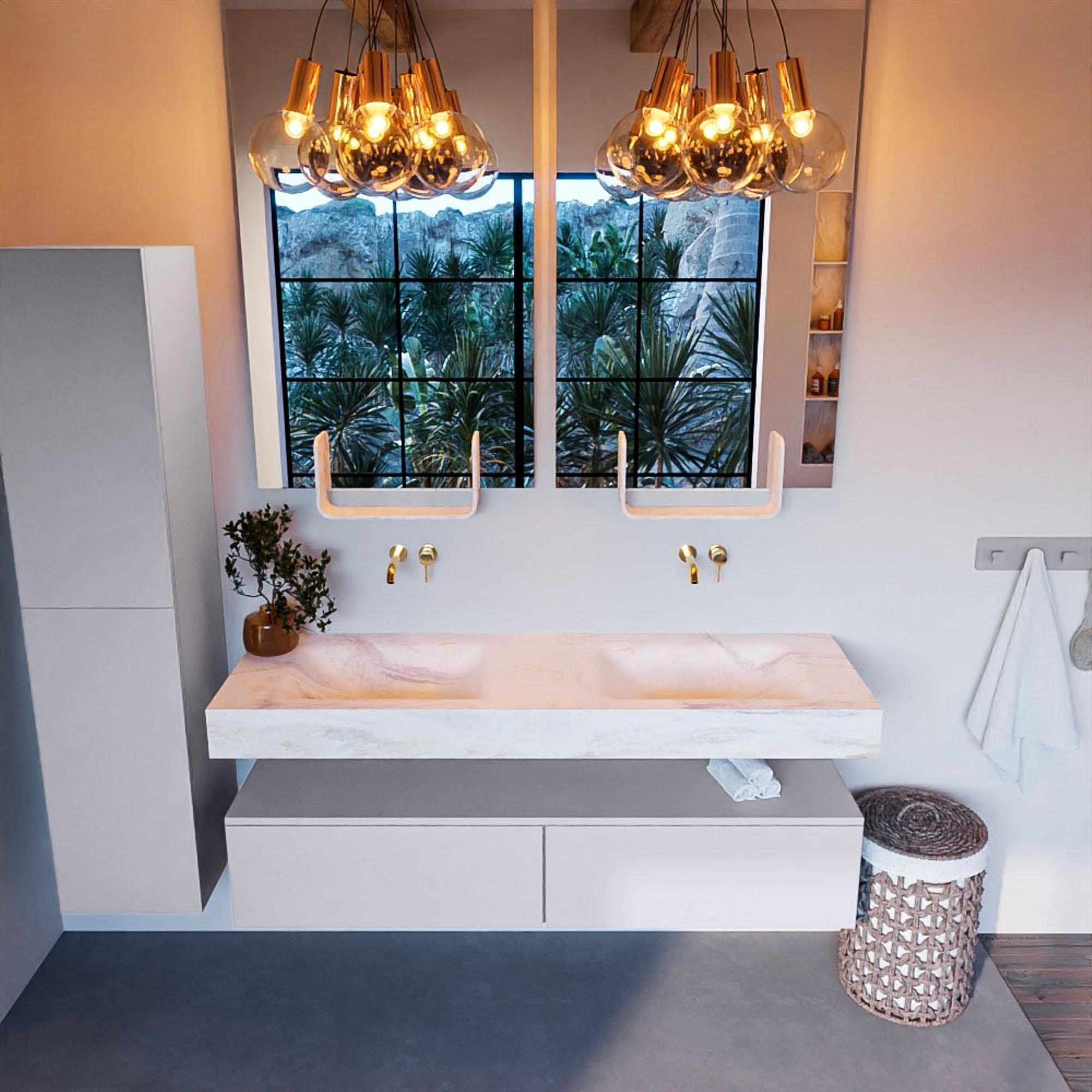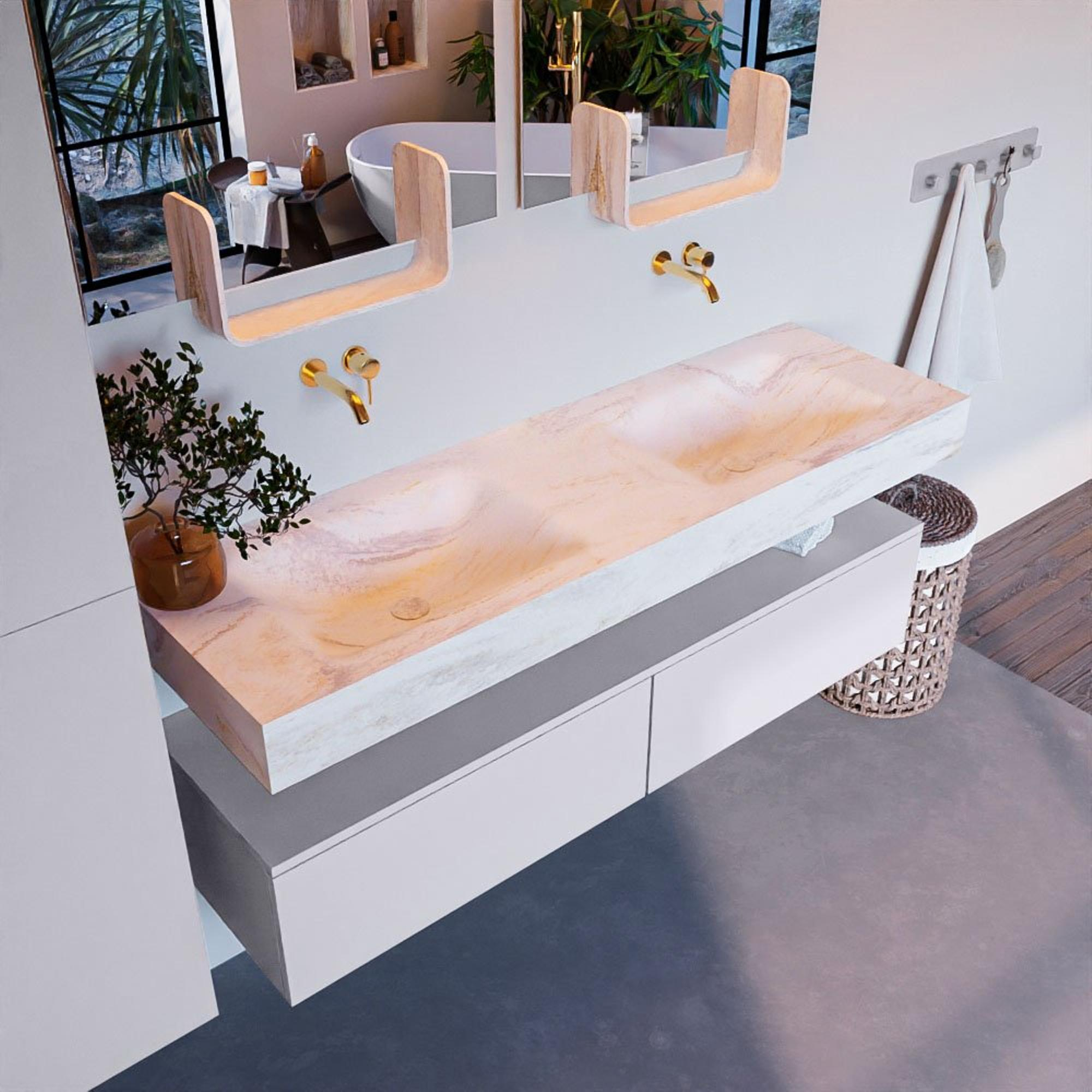 - Vrijhangende wastafel met 2 wasbakken
