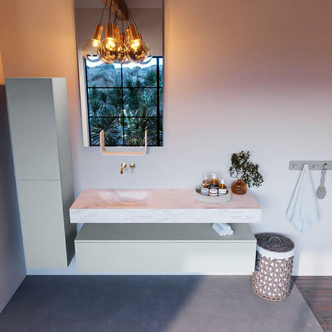 Dit badkamermeubelset straalt luxe uit in elke hoek. De hoogwaardige materialen en afwerking zorgen voor een verfijnde uitstraling. De combinatie van de Clay kleur en de vrijhangende wastafel geeft een gevoel van weelde en comfort. Een echte eyecatcher in de badkamer.