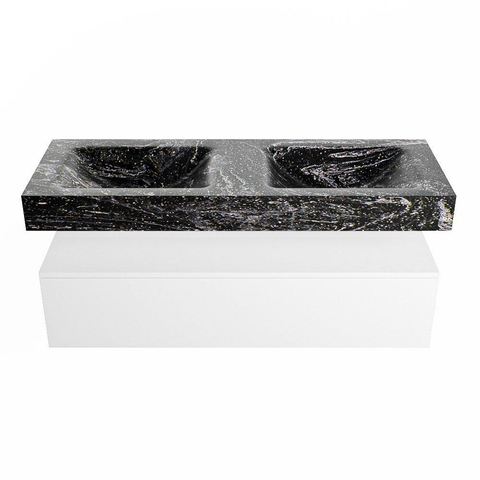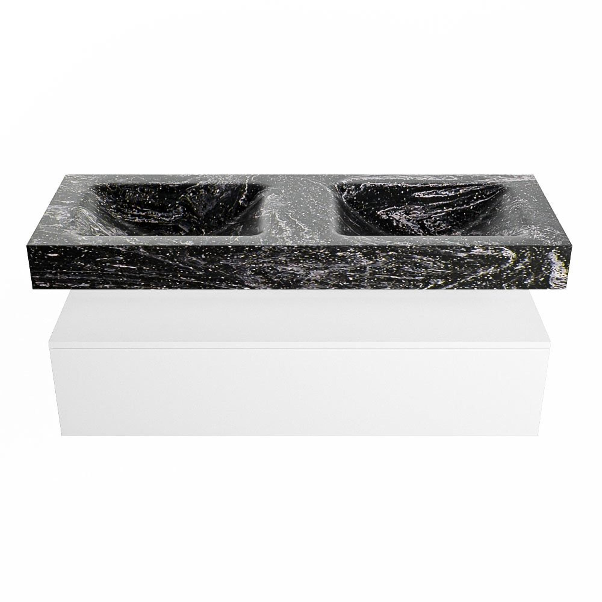MONDIAZ ALAN - DLUX Badkamermeubelset - 130cm - onderkast - Talc - 1 lade - vrijhangende wastafel - 2 wasbakken - 2 kraangaten - Lava