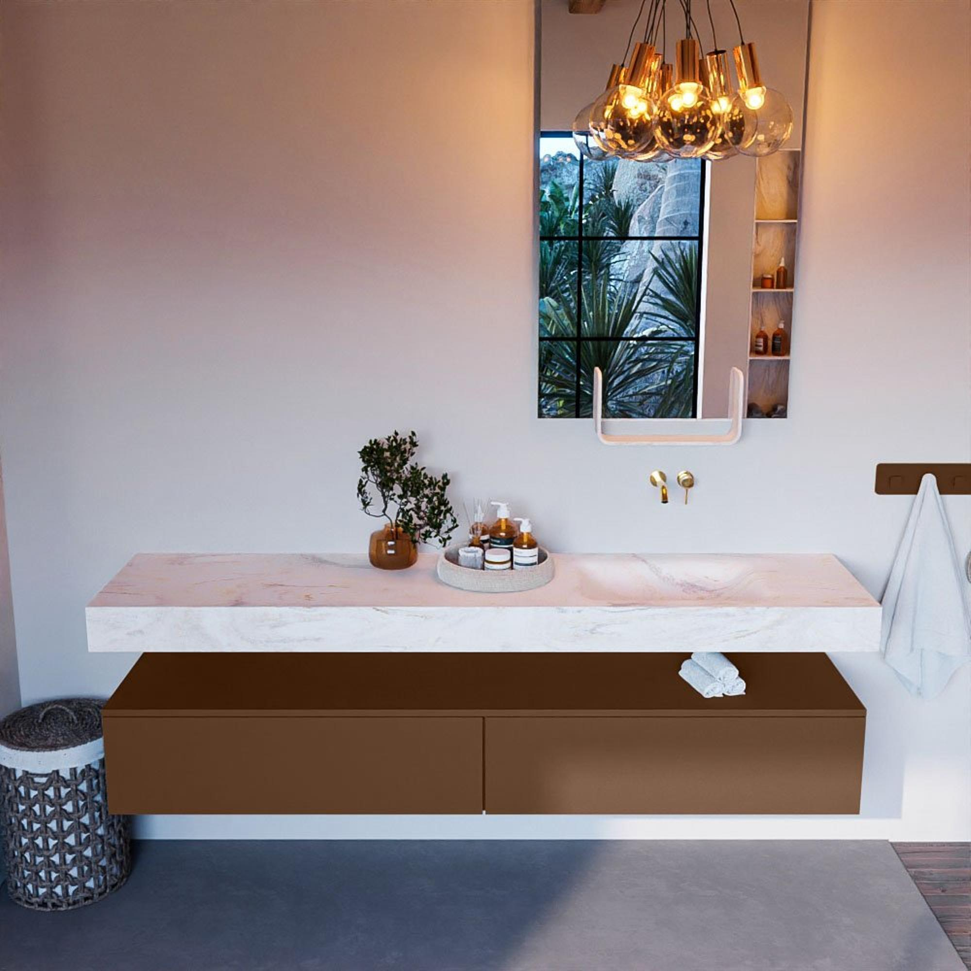 MONDIAZ ALAN - DLUX Badkamermeubelset - 200cm - onderkast - Rust - 2 lades - vrijhangende wastafel - wasbak rechts - 0 kraangaten - Ostra
