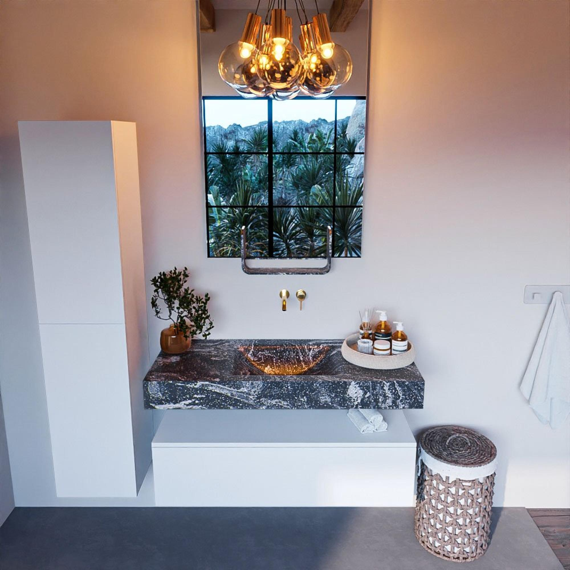 MONDIAZ ALAN - DLUX Badkamermeubelset - 110cm - onderkast - Talc - 1 lade - vrijhangende wastafel - wasbak midden - 0 kraangaten - Lava