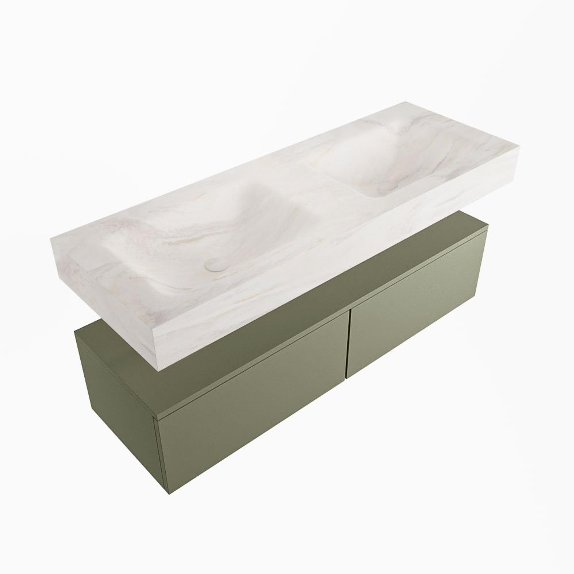 MONDIAZ ALAN - DLUX Badkamermeubelset - 130cm - onderkast - Army - 2 lades - vrijhangende wastafel - 2 wasbakken - 0 kraangaten - Ostra