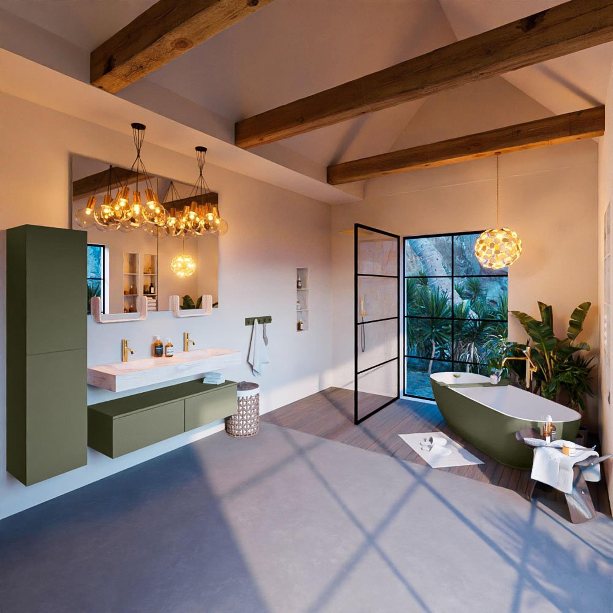 MONDIAZ ALAN - DLUX Badkamermeubelset - 120cm - onderkast - Army - 2 lades - vrijhangende wastafel - 2 wasbakken - 2 kraangaten - Ostra