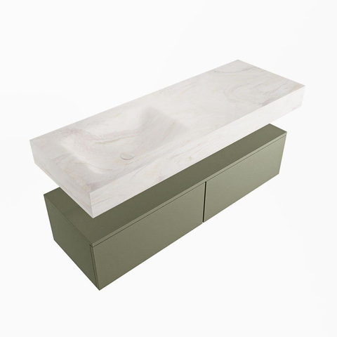 MONDIAZ ALAN - DLUX Badkamermeubelset - 130cm - onderkast - Army - 2 lades - vrijhangende wastafel - wasbak links - 0 kraangaten - Ostra