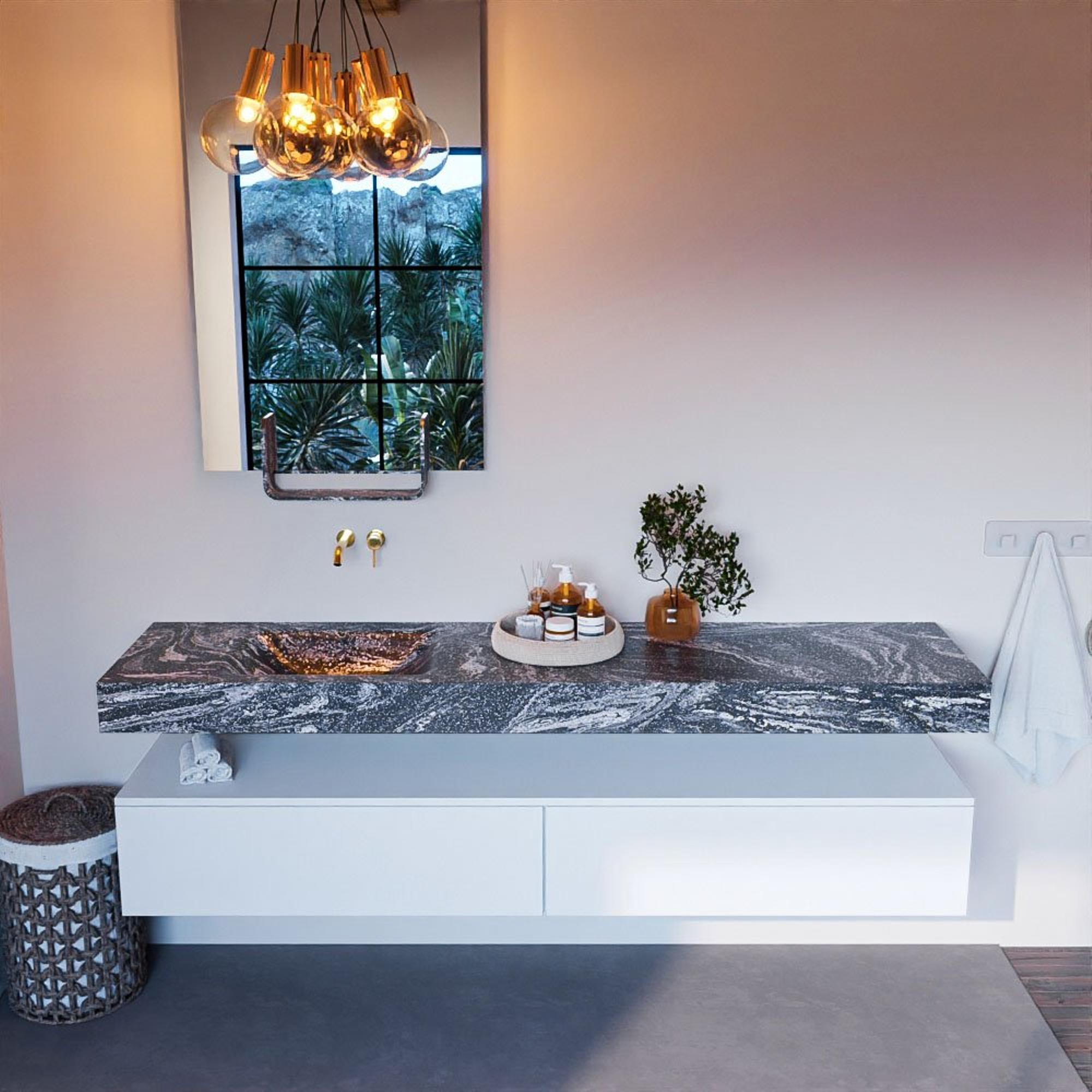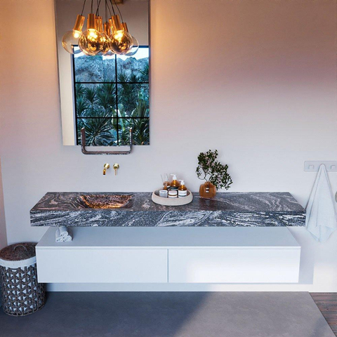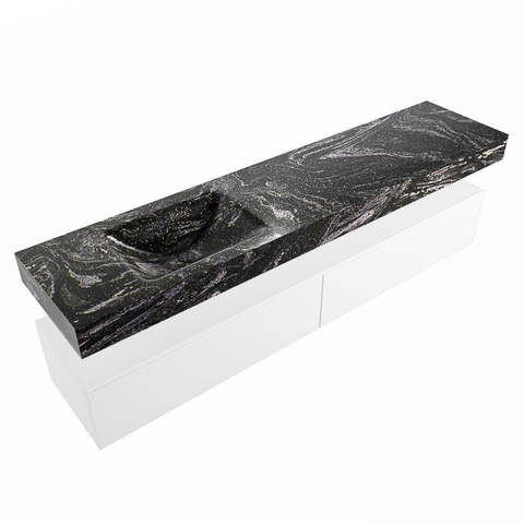 MONDIAZ ALAN - DLUX Badkamermeubelset - 200cm - onderkast - Talc - 2 lades - vrijhangende wastafel - wasbak links - 0 kraangaten - Lava