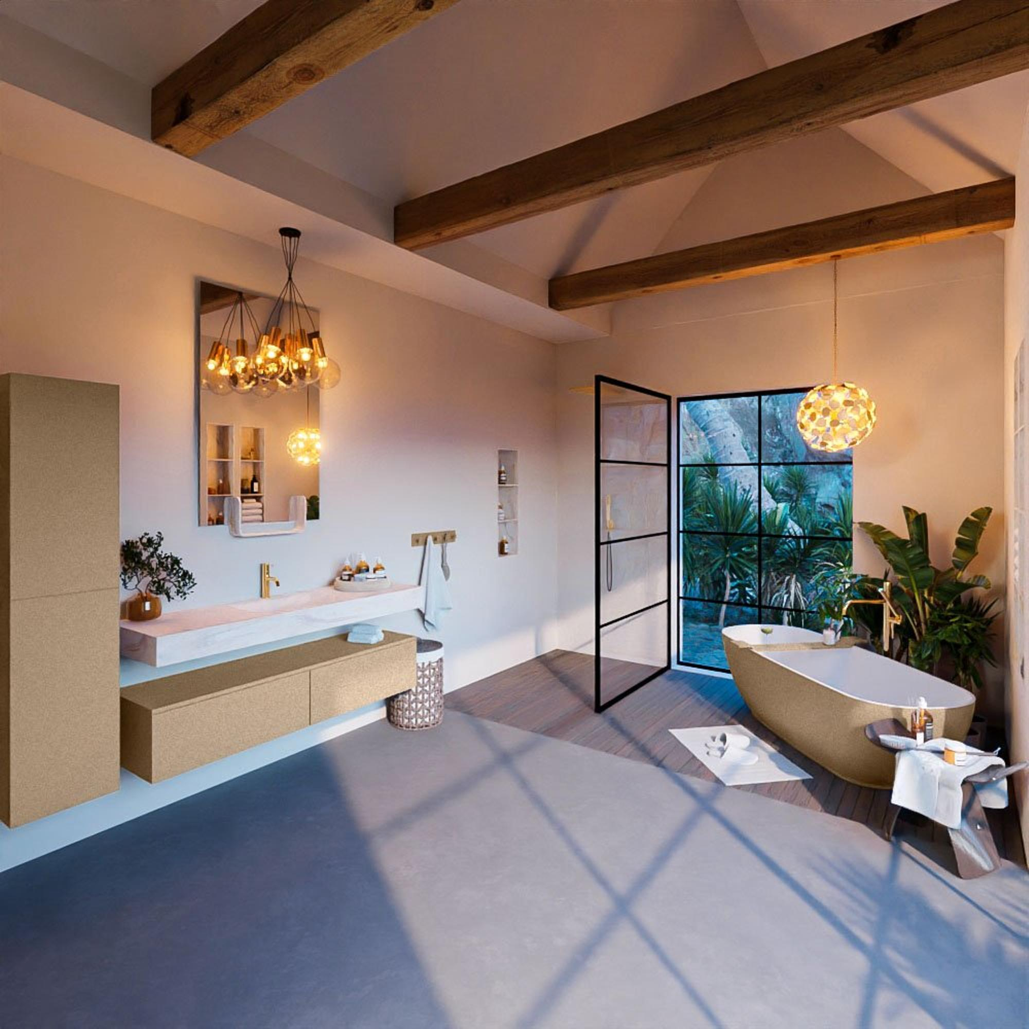 De MONDIAZ ALAN - DLUX badkamermeubelset straalt pure luxe uit. De hoogwaardige materialen en de doordachte vormgeving maken dit meubelstuk een must-have voor wie op zoek is naar een combinatie van elegantie en functionaliteit in de badkamer.