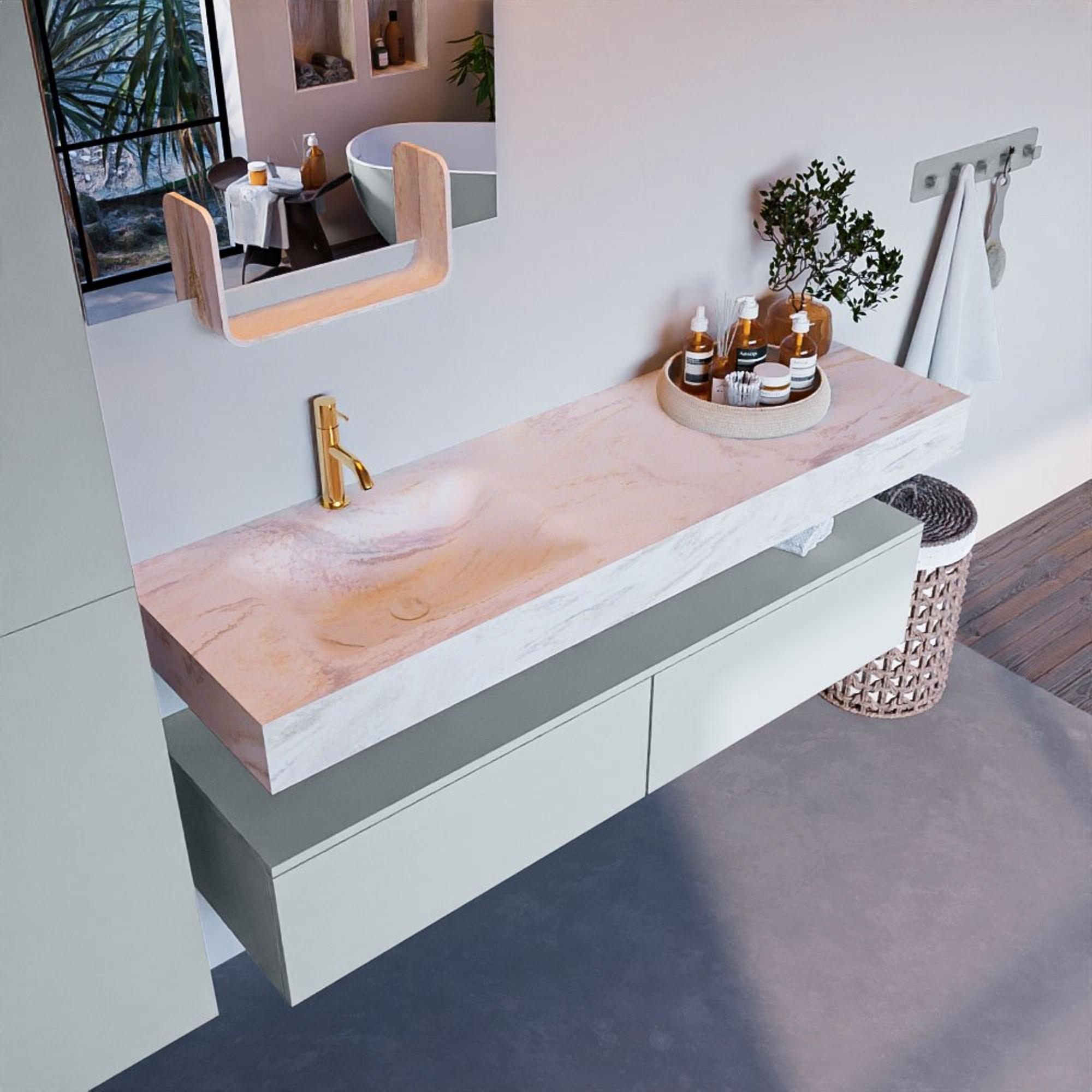 MONDIAZ ALAN - DLUX Badkamermeubelset - 150cm - onderkast - Clay - 2 lades - vrijhangende wastafel - wasbak links - 1 kraangat - Ostra