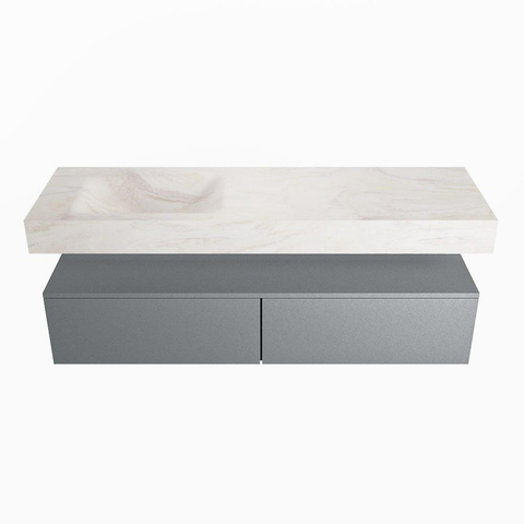 MONDIAZ ALAN - DLUX Badkamermeubelset - 150cm - onderkast - Plata - 2 lades - vrijhangende wastafel - wasbak links - 0 kraangaten - Ostra