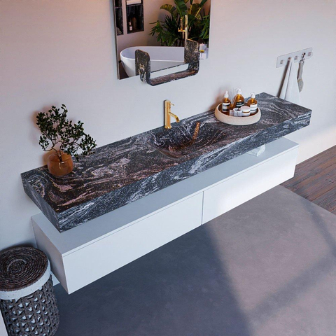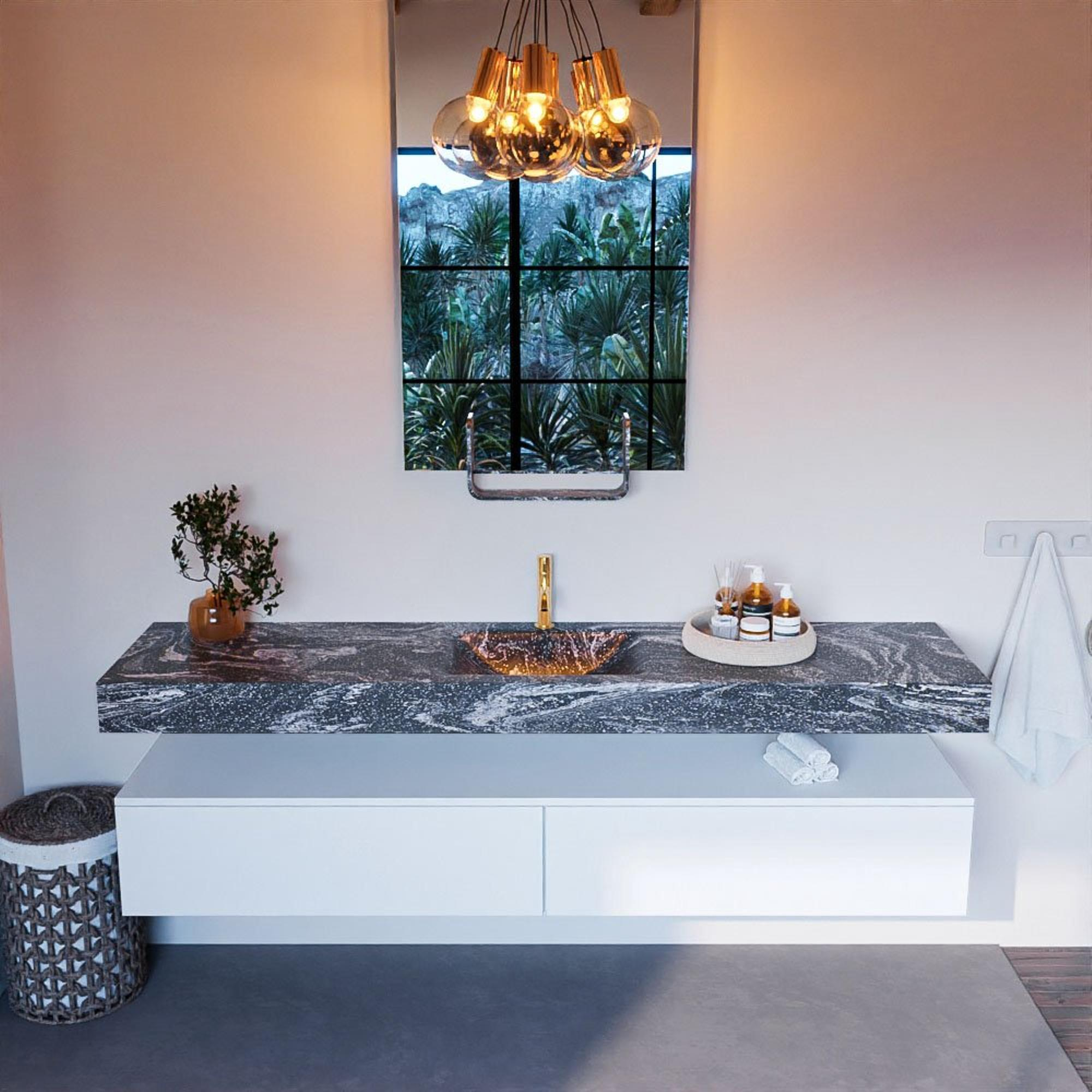 MONDIAZ ALAN - DLUX Badkamermeubelset - 200cm - onderkast - Talc - 2 lades - vrijhangende wastafel - wasbak midden - 1 kraangat - Lava