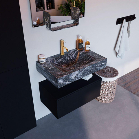 MONDIAZ ALAN - DLUX Badkamermeubelset - 70cm - onderkast - Urban - 1 lade - vrijhangende wastafel - wasbak midden - 1 kraangat - Lava