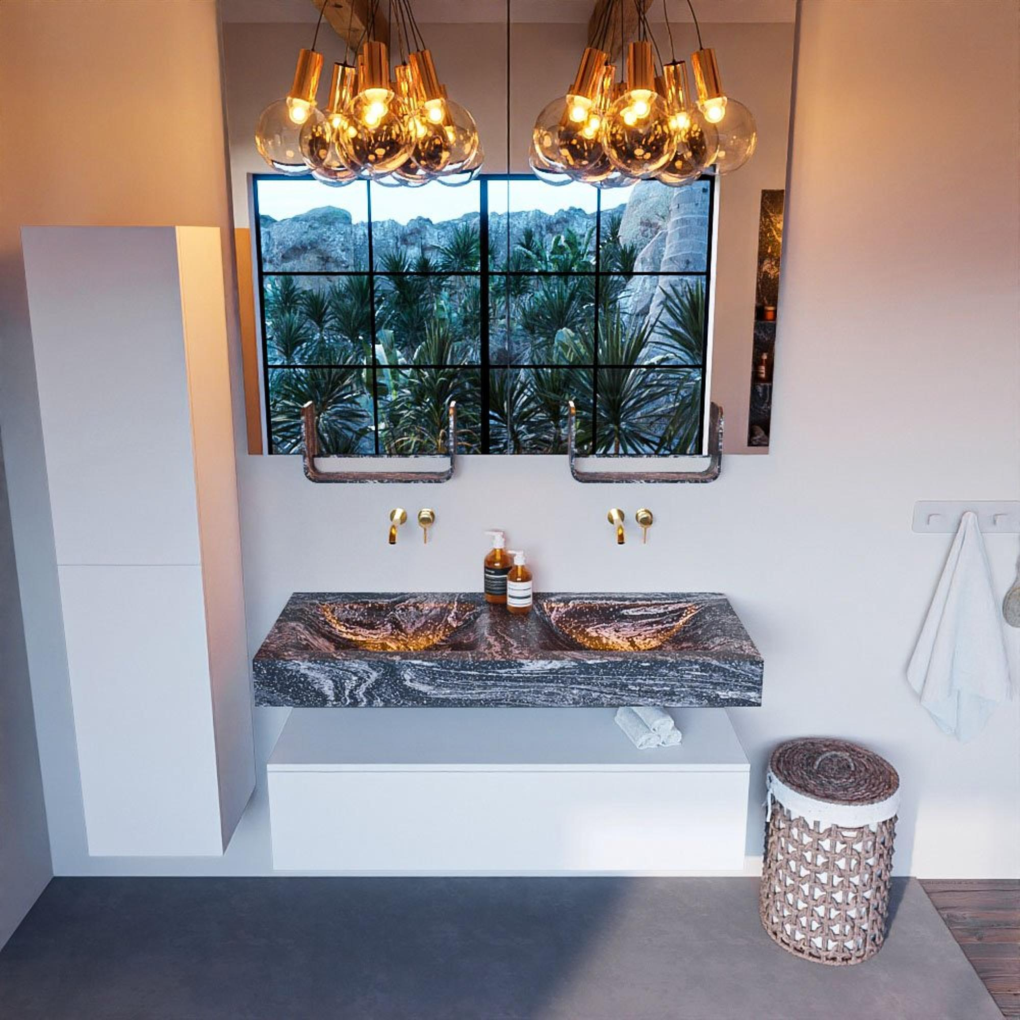 Naast zijn esthetische waarde is dit badkamermeubelset ook zeer functioneel. Met een ruime onderkast en 1 lade biedt het voldoende opbergruimte voor handdoeken, toiletartikelen en andere benodigdheden. De afwezigheid van kraangaten zorgt voor een strakke en opgeruimde uitstraling, terwijl de Lava details een eigentijdse touch toevoegen.