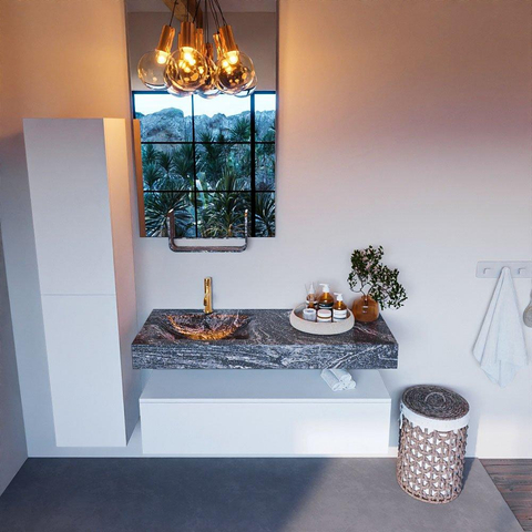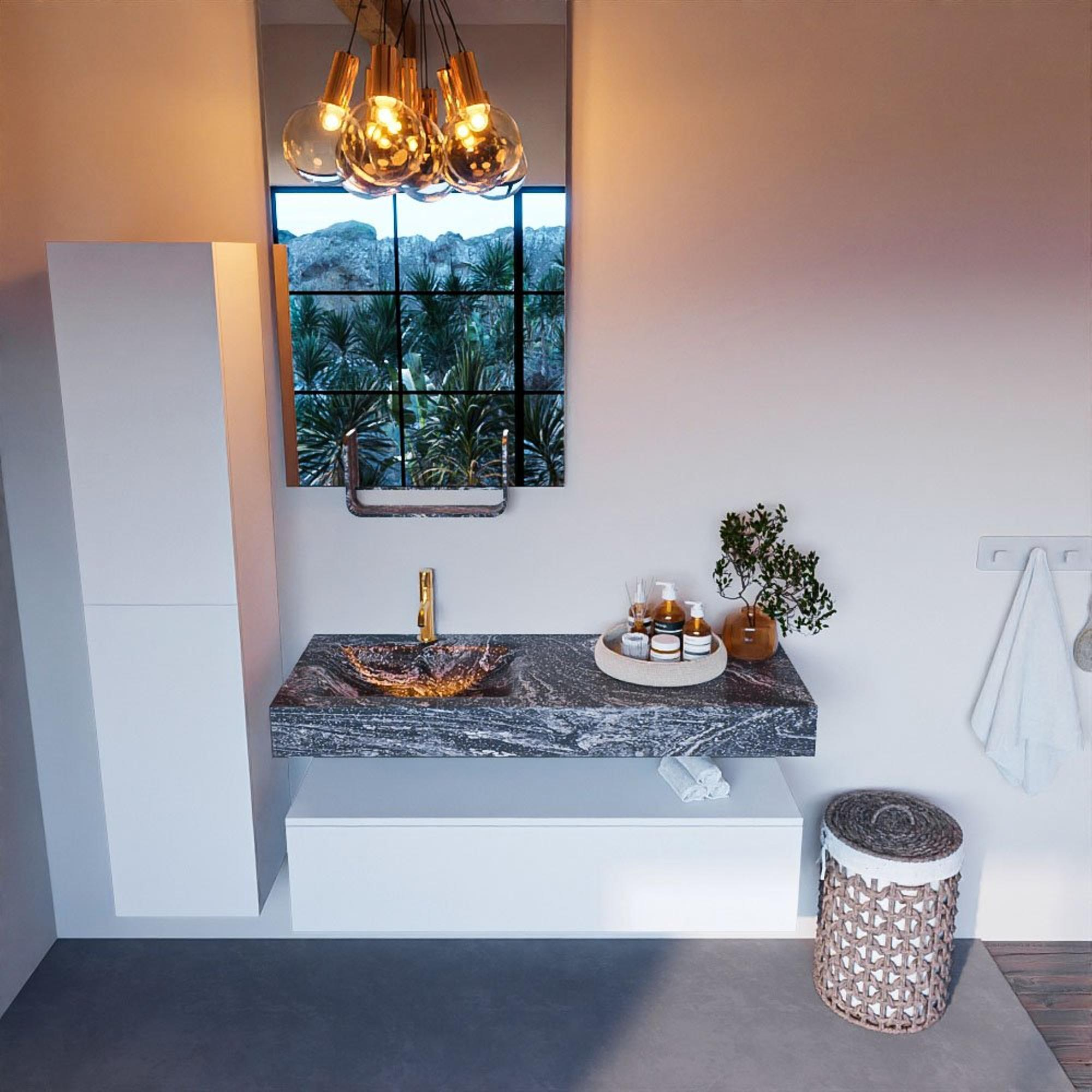 MONDIAZ ALAN - DLUX Badkamermeubelset - 120cm - onderkast - Talc - 1 lade - vrijhangende wastafel - wasbak links - 1 kraangat - Lava